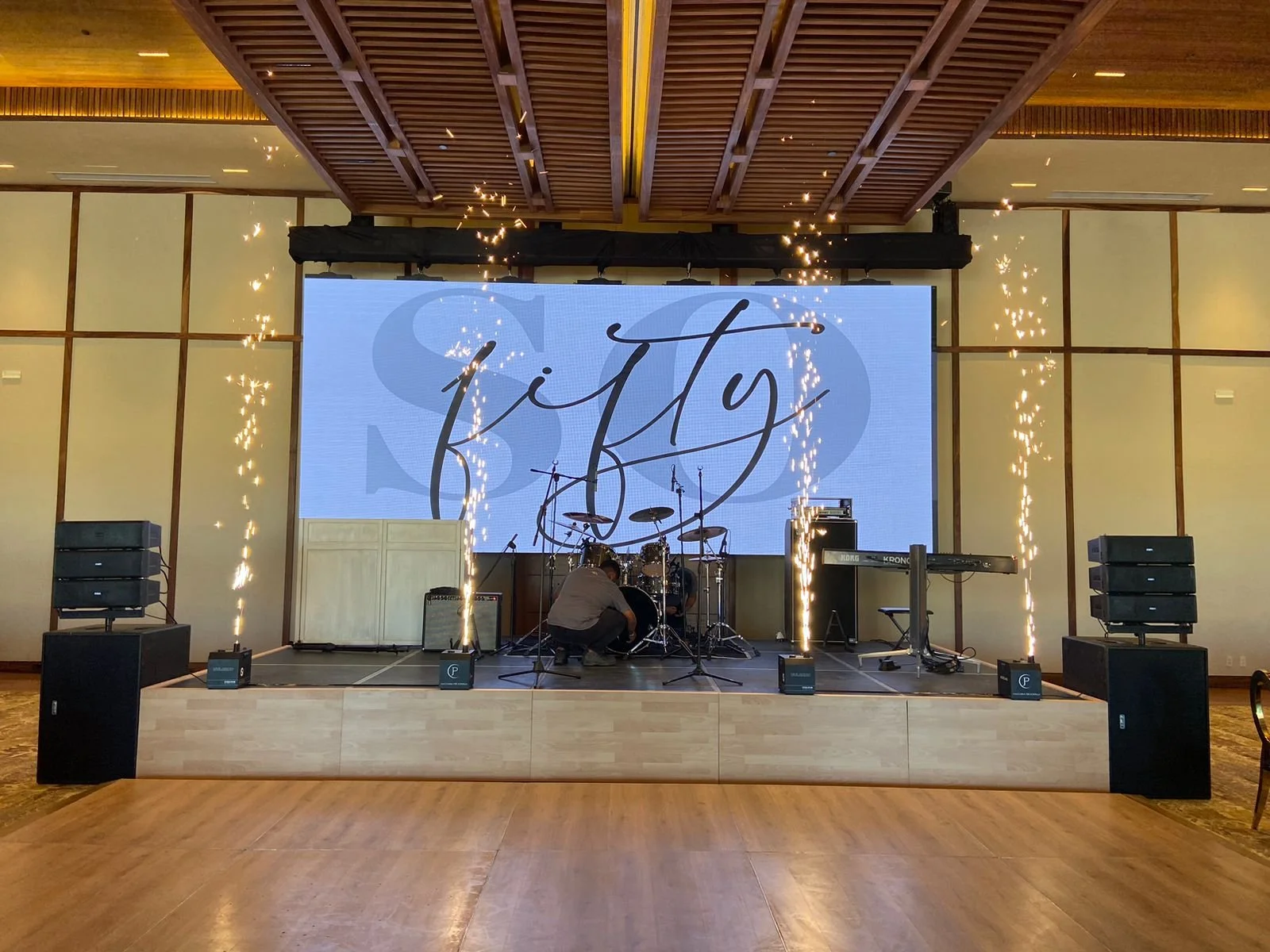 "Our audio systems are carefully scaled to match the size of your celebration—whether you're hosting an intimate gathering of up to 75 guests, a mid-sized event of up to 150, or a large wedding with even more attendees. We ensure crystal-clear sound, no matter the size of your guest list."